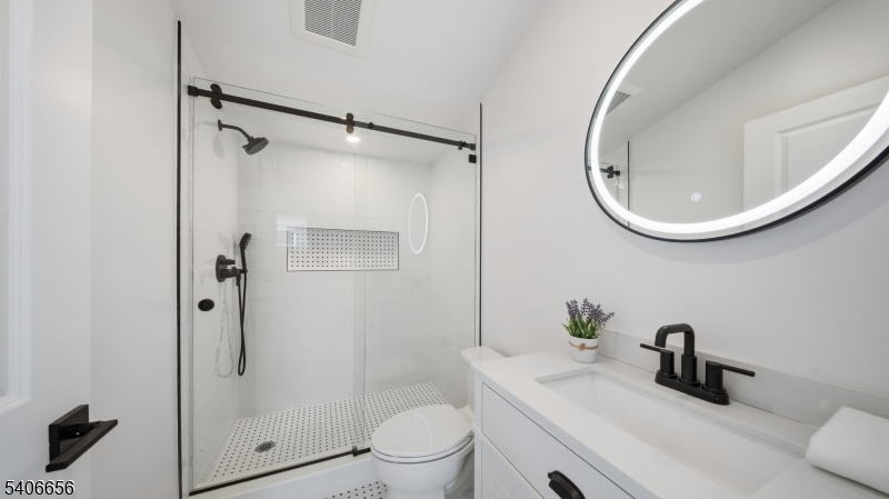 This NEW CONSTRUCTION Colonial is 4 beds 4 full bath and 1 half bath just completed and ready to move in. Hardie Plank exterior, Anderson Windows, paver driveway,paver patio,corner lot with large yard on both sides, 30 year timberline roof, 75 gal water heater, 2 Units 4 zones heat and AC, Smart Home all remotely controlled, speakers to the patio, fireplace in great room with brand new TV, open floor plan, hardwood select floors 3 1/2 wide, 9 foot ceilings, water purification system for drinking water,1 car garage with 10 foot door, large driveway 32 feet, laundry on 2nd floor, all Jenn Air appliances, Quartz counters, double sliders to paver patio, 2 electric panels, primary has WIC and large full bath and extra closet, 3rd floor bonus with full bath, basement has full bath, Across the street from highly ranked Essex Fells School... Just move in and enjoy