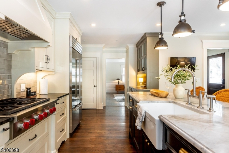 Set on one of Maplewood's most desired streets, this stunning Colonial with Victorian elegance delivers architectural integrity, elevated modern updates, and an exceptional village lifestyle. A welcoming front porch, sunny exterior, and classic curb appeal create an immediate sense of warmth & charm. Inside, a flowing floorplan of gracious, light-filled rooms showcases fine period details paired with thoughtful contemporary upgrades. The chef's kitchen is a true centerpiece, featuring stone countertops, a Wolf cooktop, double wall ovens, SubZero refrigeration, two Miele dishwashers, walk-in pantry, eat-in island, and a custom built-in wine bar with cooler. The kitchen opens seamlessly to dining, living, and family rooms, making daily living and entertaining effortless. Upstairs, five private bedrooms and two full baths include a serene primary en-suite. The incredibly expansive third-fl Great Room offers flexible space for work, play, or relaxation, while a finished basement adds room for a gym, studio, or recreation. Outdoors, a deeply private backyard OASIS awaits, anchored by a garage-turned-cozy escape, a luxury patio with heaters, gas fireplace, outdoor kitchen, and TV for year-round enjoyment. Smart home systems, multi-zone HVAC with filtration, security, and premium finishes complete the offering. Just 2 blocks from Maplewood Village shops, restaurants, NYC trains, and South Mountain Reservation trails, this is a home where design, comfort, and community come together!