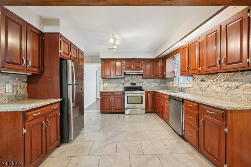 Welcome home to this beautifully maintained 3-bedroom, 2-bath Colonial tucked along a quiet residential street in the heart of Pequannock. Step into the bright, sun-filled living room, where hardwood floors and a large picture window create a warm, welcoming setting ideal for both everyday comfort and entertaining. The living room flows into a spacious dining room, offering an inviting area for intimate meals or larger gatherings. A wide cased opening leads to the kitchen, featuring custom cabinetry, granite countertops, stainless steel appliances, a separate dining nook, and convenient in-kitchen laundry. From here, access the mudroom, the oversized 1-car garage, or the expansive backyard. Off the kitchen, the sunken family room provides a cozy retreat with its brick fireplace and relaxed atmosphere. A private home office or library sits just beyond perfect for work, study, or quiet reflection. A full bath completes the first floor. Upstairs, the primary bedroom offers a generous closet, accompanied by two additional bedrooms and a second full bath. Outside, the large fenced-in yard features a patio ideal for grilling, entertaining, and outdoor dining, with plenty of space for recreation and gathering. Pequannock offers a charming small-town feel with parks, shops, restaurants, top-rated schools, and easy access to major commuting routes, creating a lifestyle of convenience and community.