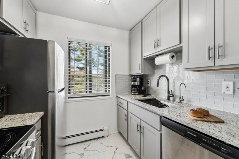Experience the perfect blend of style and value in this stunning 3rd-floor corner unit. Flooded with natural light from a large picture window, you'll enjoy serene views of Riverside County Park and the water. This move-in-ready home features rustic hickory-planked floors, a fresh "light and airy" palette, and a modern kitchen. Highlights include trendy barn-style closet doors, a king-sized bedroom, and two versatile dining areas. Bathroom with a tub/shower. Enjoy secure lobby access from assigned parking, and convenient ground-floor coin-op laundry, With heat and hot water included in the low HOA, It's a smart, affordable alternative to renting. and a prime Lyndhurst location just minutes from Route 3 and NYC transit.