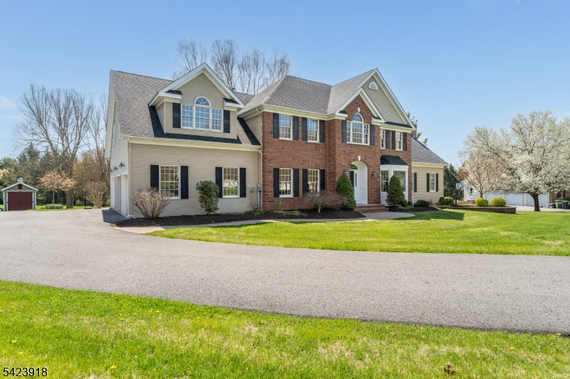 Elegant brick-front Colonial set on 1.62 beautifully landscaped acres in sought-after Wellington West. This impressive 4-bedroom, 2.5-bath home welcomes you with a gracious two-story foyer, sweeping staircase, rich hardwood floors, and beautifully proportioned living spaces filled with natural light. The dramatic great room is a standout, featuring soaring ceilings, arched windows, a striking floor-to-ceiling brick fireplace, and French doors that open to an expansive deck overlooking the private property. The spacious kitchen is designed for both everyday living and entertaining, with custom cabinetry, a center island, generous prep space, and a sunlit breakfast area. Formal living and dining rooms, a private den, second-floor laundry, and a luxurious primary suite with walk-in closet and spa bath add comfort and convenience. A full walkout basement, 3-car garage, patio, and open level grounds complete this exceptional offering. A home of timeless appeal, wonderful scale, and classic elegance.