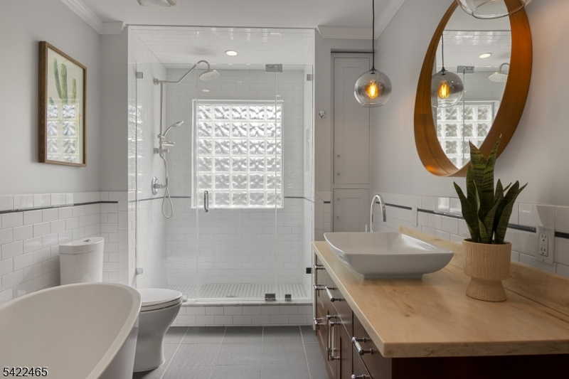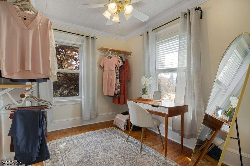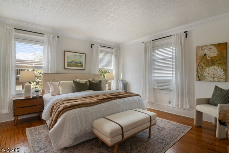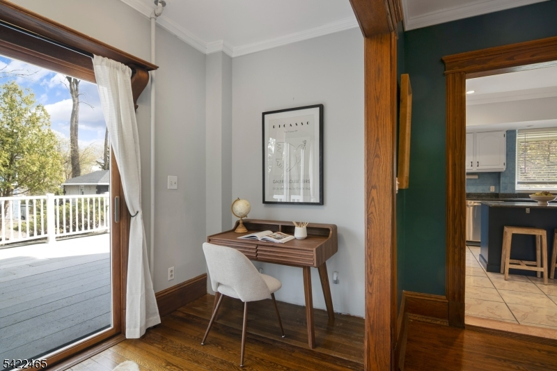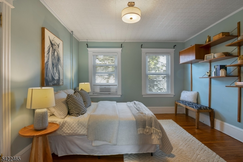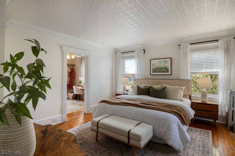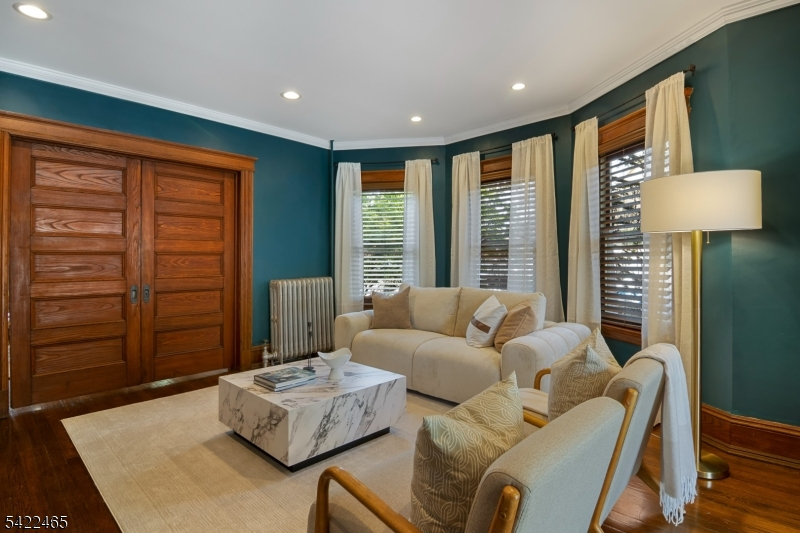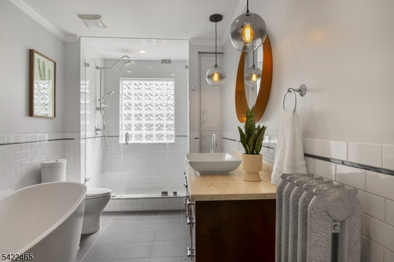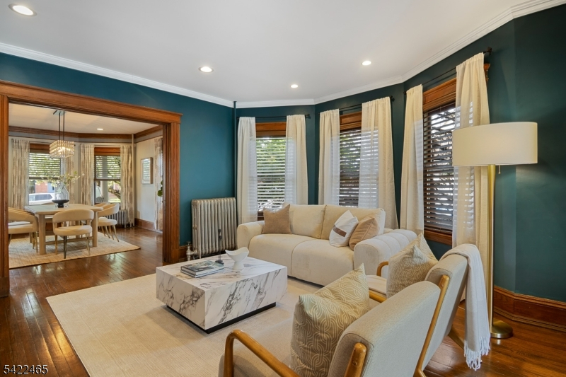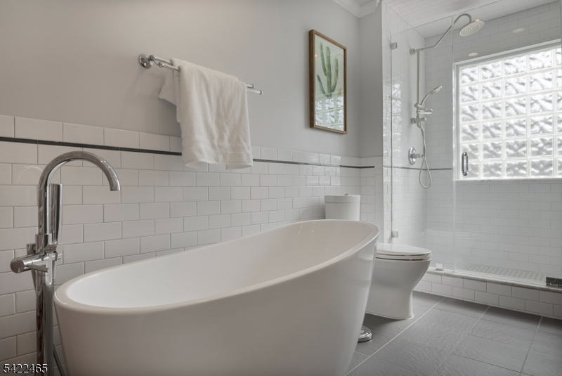 Welcome to this large, beautiful colonial filled to the brim with period-details and modern amenities. Walking in, you're greeted by the striking formal entryway with American chestnut trim work which leads into the large formal dining room. Sliding doors separate the dining room from the formal living room with decorative marble fireplace. Beyond the living room is a sunroom with sliders to the deck. A bright eat-in kitchen, powder room, and mudroom/laundry room complete the first floor. Upstairs, there are four generously-sized bedrooms, including the huge primary bedroom with adjoining dressing room and plenty of closet space. The recently renovated, custom, full bathroom has a large shower, deep soaking tub, exposed brick, and plenty of storage. The third floor is perfectly appointed for an au-pair or extended guests, with its own living room, bedroom, kitchenette, and full bathroom, which is accessed via a spiral stairwell from the second floor OR via its own private exterior stairwell. The basement is full, unfinished and dry, with a beautifully restored stone foundation.The backyard is a hidden oasis, with a large composite deck with awning overlooking a pond and a yard of garden beds. There is parking for 8+ cars available in the driveway, in addition to the detached two-car garage.Conveniently located within steps of downtown Bloomfield Ave's shopping and restaurants, schools and houses of worship, bus service to NYC, and a short walk to Grover Cleveland Park.