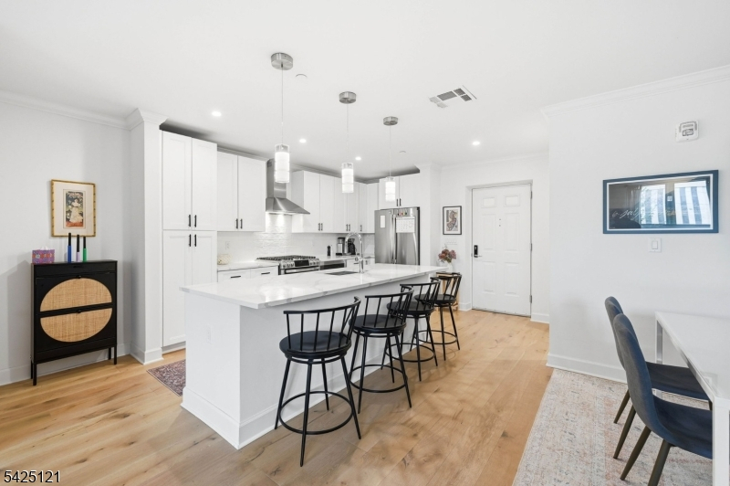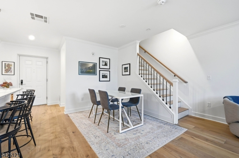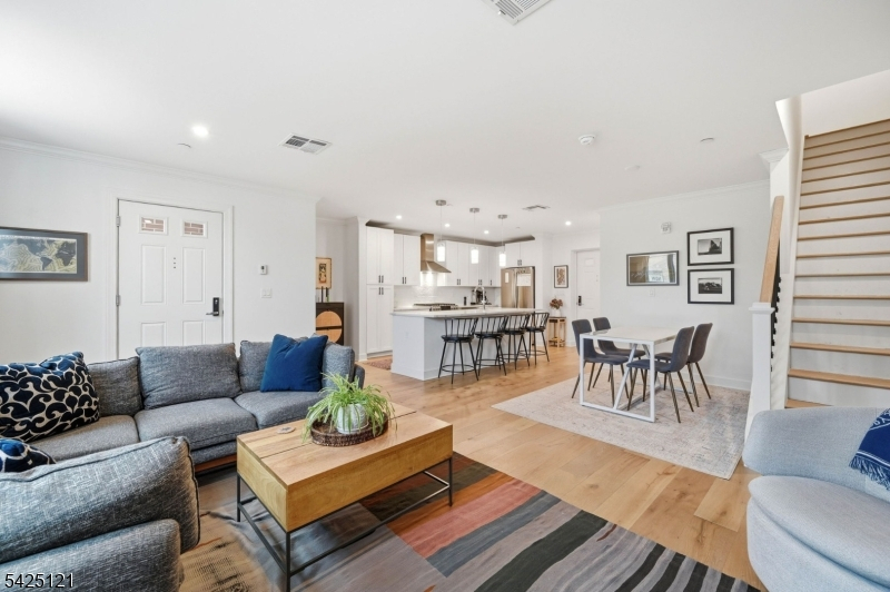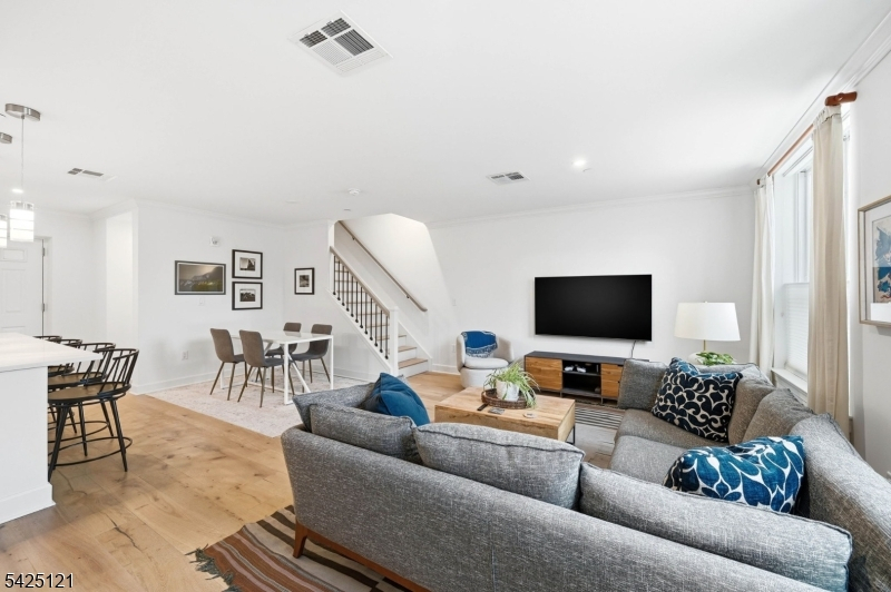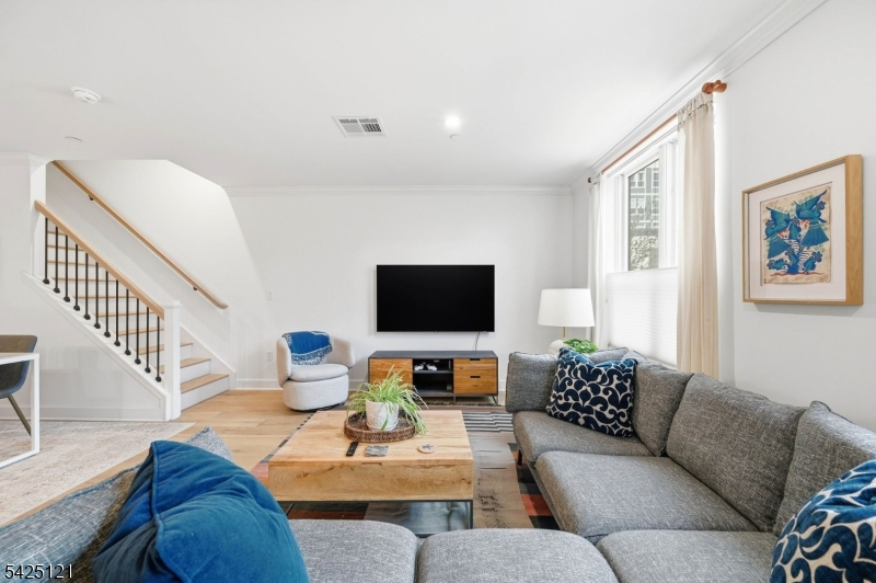 Spacious 2-bedroom, 2.5-bath townhouse in the heart of Downtown Bloomfield offering approximately 1,564 sq ft of living space. This luxury residence features high ceilings, hardwood floors, and modern finishes throughout. The stunning kitchen is equipped with stainless steel appliances, gas range, microwave, and dishwasher. Both bedrooms are generously sized and include walk-in closets. In-unit washer and dryer provide added convenience. Residents enjoy access to EXCEPTIONAL AMENITIES including an indoor basketball court, fully equipped fitness center, yoga room, courtyard with outdoor kitchen, ping pong table, shuffleboard table, fireplaces, resident lounge, co-working spaces with private work pods, and a secure package room. Ideally located near the Bloomfield Train Station for convenient NYC access, with Montclair just minutes away offering a variety of dining, shopping, and entertainment options.One parking space included. Additional parking spot can be acquired for $75 a month.
