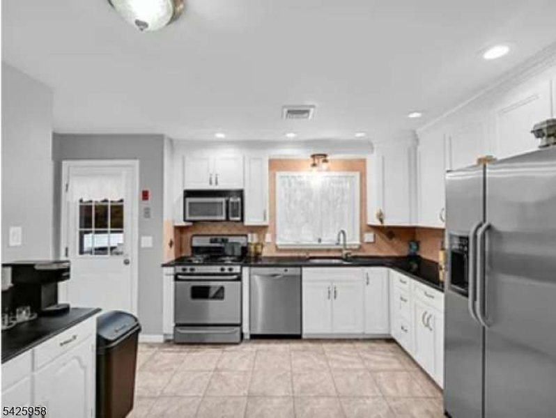 Welcome to 15 Sweetwood Ct, a spacious, beautifully maintained 5-bedroom, 3-bath home combining comfort, function, and modern appeal. The updated kitchen features white cabinetry, stainless steel appliances, granite countertops, and a dining area perfect for daily living or entertaining. The bright living room offers vaulted ceilings, skylights, and a wood-burning fireplace. A main-level bedroom with walk-in closet, full bath, and laundry room adds flexibility. Upstairs includes four generously sized bedrooms and another full bath. The finished basement provides extra living space with a full bath and storage. Enjoy a deck, fenced yard, two-car garage, large driveway, hardwood floors, central air, and energy-efficient solar panels, all in a quiet, convenient neighborhood near shopping, dining, and highways.