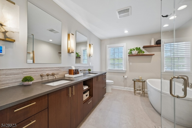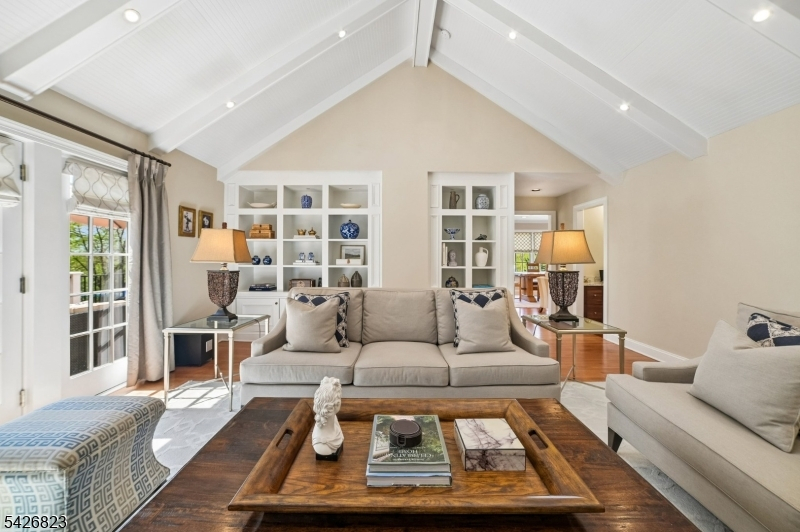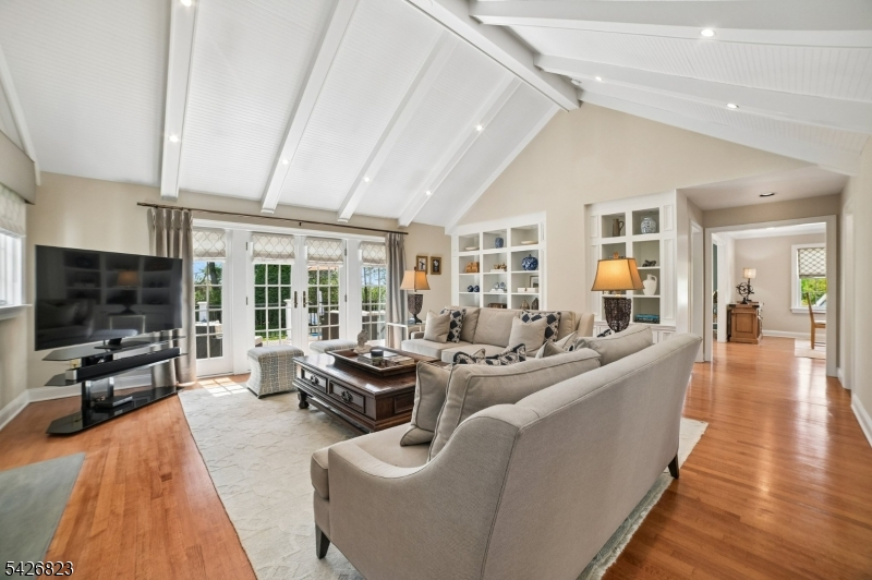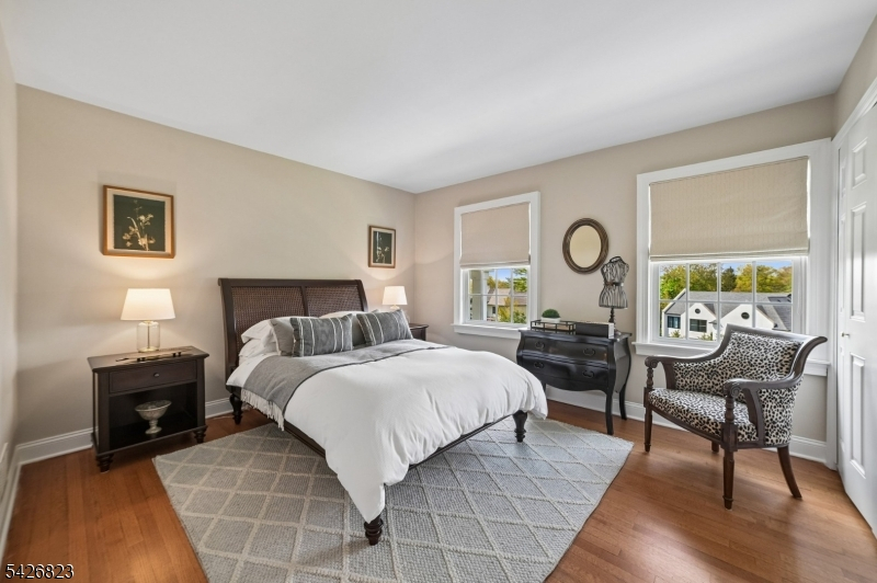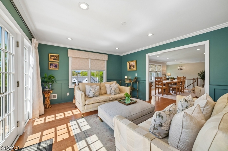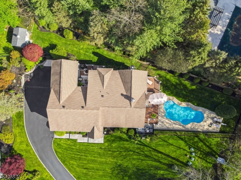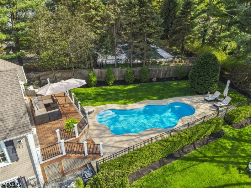 Set on nearly half an acre in the coveted Wickham Woods section of Chatham Township, this custom-built home blends timeless elegance with modern updates and exceptional indoor-outdoor living. Renovated in 2012 and 2022, this luxury residence offers 5 bedrooms and 3.5 baths designed for effortless entertaining and everyday comfort. Sunlit interiors feature Andersen windows, custom Roman shades, & wood flooring throughout the first level. Exterior Stone details & Slate stone front walkway.The Gourmet chef's Kitchen showcases custom cabinetry, black granite countertops, a large island w/room for seating, JennAir 6-burner cooktop with Griddle & Miele wall oven, warming drawer, & microwave, plus a beverage refrigerator, coffee bar, & built-in banquet seating. The kitchen opens to a vaulted family room all white walls w/FP & custom built-ins, while French doors lead to the deck, patio, & in-ground pool. Formal LR & DR, detailed millwork, crown moldings, & a marble foyer with chandelier enhance the home's refined character. The main level includes 3 bedrooms, 2 full baths, a powder room, walk-in pantry, office nook with granite workspace, and flexible bonus spaces. A private primary suite is accessed via a wide hall with custom closets, featuring a boutique-style walk-in closet, sitting area, and an ensuite spa-like bath with soaking tub, shower, & deck access. 3 full baths offer radiant heated floors. Outdoors, enjoy mature & flowering trees,curated landscaping, exterior lighting