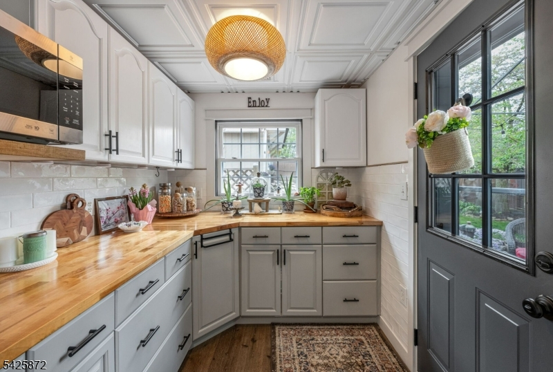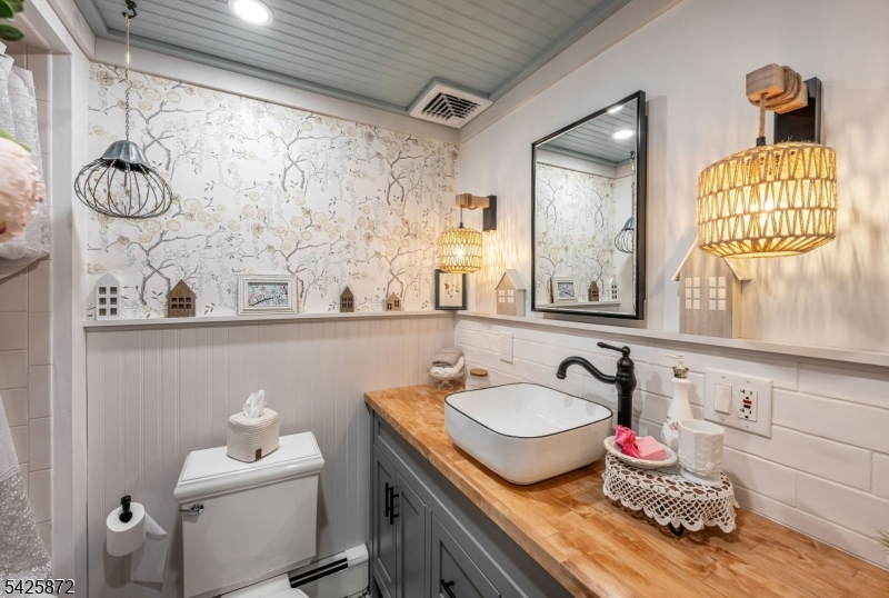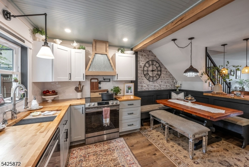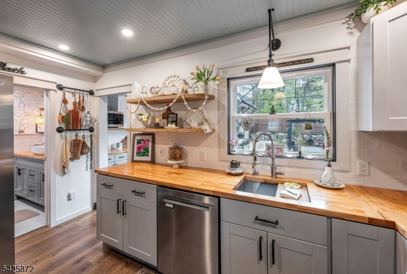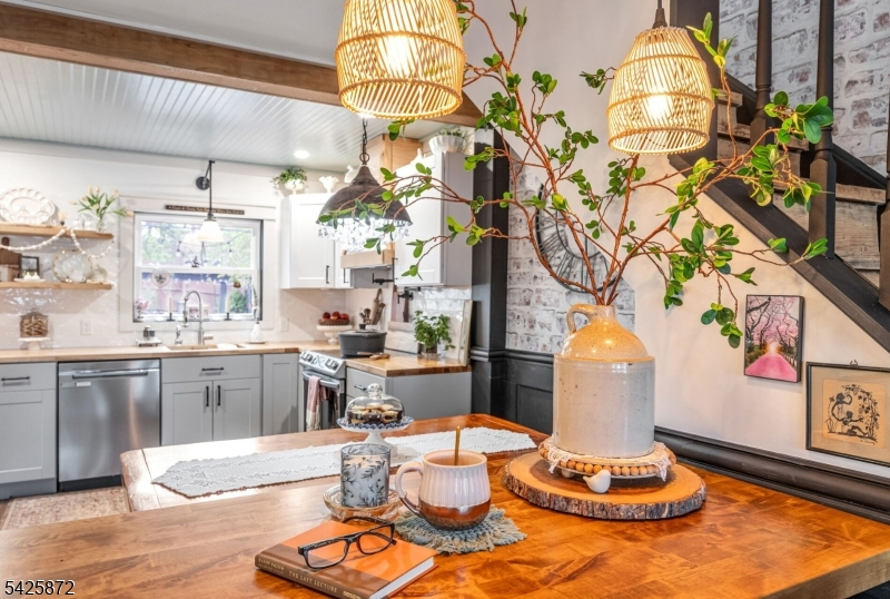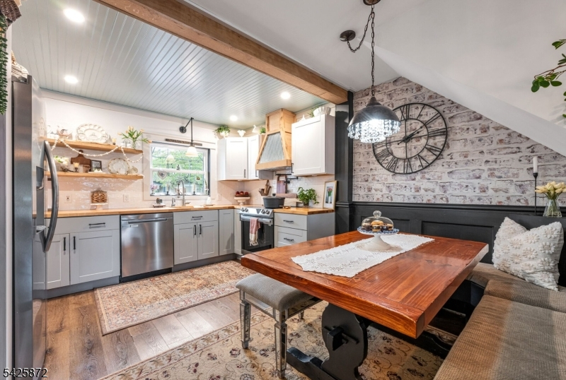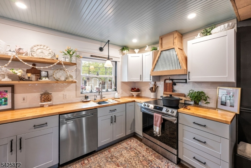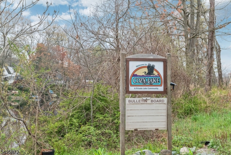Welcome to this stunning, one-of-a kind, fully renovated 3BR Colonial offering picturesque year-round lake views directly across from Cozy Lake. Starting with the beautiful open front porch overlooking the lake, this home blends modern design with exceptional craftsmanship throughout, boasting beam ceilings, luxury vinyl plank floors, & an open, airy floor plan that feels straight out of an Instagram dream. The gorgeous kitchen is a true centerpiece, complete with butcher block counters, wood ceiling, new cabinetry, custom hood vent, instant-hot and a charming built-in breakfast nook with hidden storage, plus a beautifully detailed butler's pantry. Main level also offers a spacious living room, inviting family room with SGD walkout, full bath, and stylish first-floor laundry. Step outside to a private, fully fenced backyard that feels like an English garden, showcasing a patio with 2 gazebos, a workshop shed, & a second shed styled as a tiki bar, perfect for entertaining. Upstairs features 3 large bedrooms & a large office. Main bath offers a spa-like experience with cathedral ceiling, jetted tub & walk-in shower. Expansive primary suite offers lake views, walk-in closet, full bath & walk-up attic. A truly special home inside and out! With optional lake membership, enjoy access to beach, boating, & a warm, close-knit community. Newer windows, recessed lights, ceiling fans, generator hookup, new boiler. Come experience it for yourself. Close to 23/15 & shopping.
