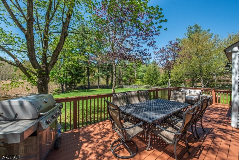 Welcome to Smoke Rise! This property offers a wonderful blend of spacious interior living and a prime level lot in one of Kinnelon's most sought-after gated communities. The Heart of the Home -The main level is designed for both comfortable daily living and seamless entertaining. The inviting family room, anchored by a classic wood-burning fireplace, serves as the perfect centerpiece for cozy evenings. Transition easily into the kitchen, which features a separate dinette area and sliders that lead directly to the expansive deck ideal for al fresco dining or morning coffee. A dedicated office on the main level (currently used as a gym) is the perfect work from home space. The upper level is highlighted by a primary bedroom suite that truly feels like a sanctuary. It features, a generous walk-in closet, a sumptuous full bath equipped with dual sinks, a deep soaking tub, and a separate stall shower; three additional well-appointed bedrooms & main bath complete the second floor. The lower level expands your living space with a recreation room complete with a built-in bar, ready for game nights or gatherings. For those with hobbies or storage needs, the oversized two-car garage boasts high ceilings, offering plenty of vertical space. Situated on a rare level 1.03-acre lot less than a half mile to the East Gate, the property features privacy fencing up front & split-rail fencing around back. Relax in the hot tub (offered as-is) & settle in to your next chapter.