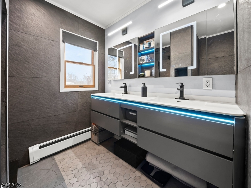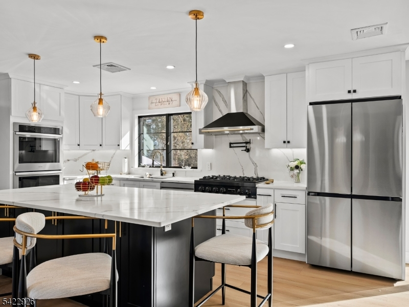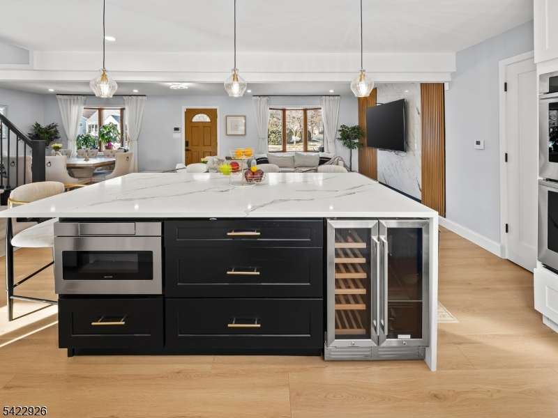 Welcome to 43 Ploch Road, a beautifully remodeled residence in the desirable Albion section of Clifton. This spacious 4-bedroom, 2.5-bathroom home features an open-concept layout and new hardwood floors throughout. The chef-inspired kitchen is the heart of the home, boasting quartz counters, custom cabinetry, a grand center island with seating for 6, stainless steel appliances, a double oven, pot filler, and a beverage/wine fridge. Sliding glass doors open to a gorgeous backyard with an inground saltwater pool (new liner) and a storage shed. The second floor includes a laundry room and the main bedroom suite, which features a walk-in closet and a luxurious bath with a smart toilet. Recent updates include new AC and a new Navien hot water/furnace combo unit. This home combines modern living with a location offering easy access to major amenities and transportation.