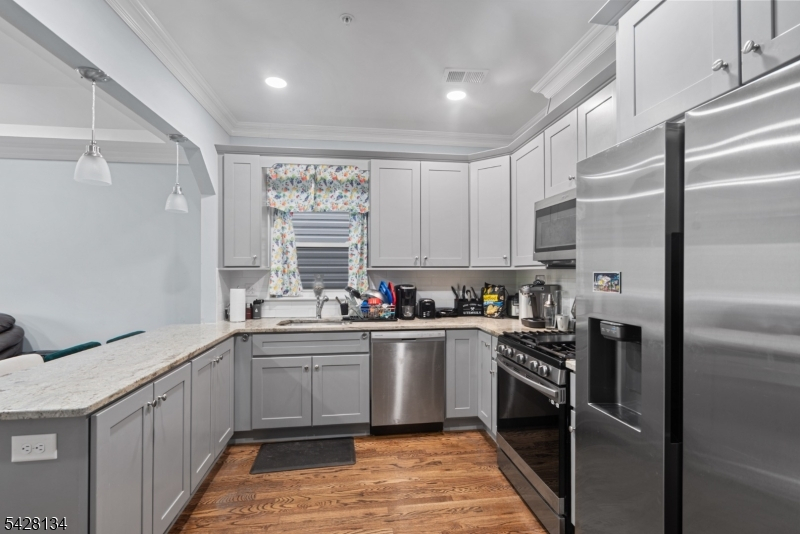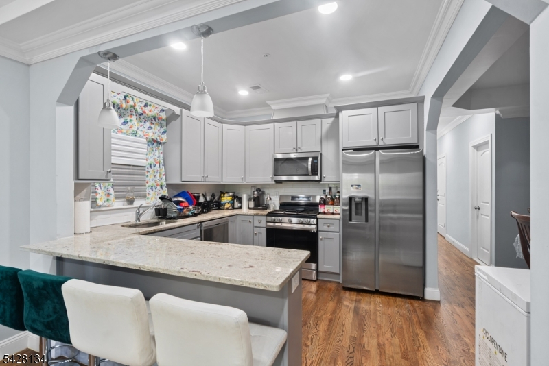 Newer construction two-family home offering modern design and excellent income potential. Each unit features 3 spacious bedrooms and 2 full bathrooms with open-concept layouts, hardwood floors, and abundant natural light throughout. The kitchens are equipped with stainless steel appliances, a breakfast bar on the 2nd and 3rd floors, and flow seamlessly into a separate dining room, perfect for everyday living and entertaining. Primary suites include walk-in closets and private en-suite bathrooms, while each unit also offers its own laundry for added convenience. Sliding glass doors on the ground floor provide direct access to a private, vinyl-fenced backyard, ideal for outdoor enjoyment. Additional highlights include balconies on both the 2nd and 3rd floors, a bonus 1-bedroom, 1-bath unit for extended living or added rental income, and a 2-car garage for off-street parking. Conveniently located on a quiet residential street just 10 minutes from Newark Penn Station, you'll enjoy an easy commute to NYC or Hoboken. Surrounded by local parks, delis, shops, and restaurants, with convenient access to bus, rail, and other transportation options this is a city living with a neighborhood feel!